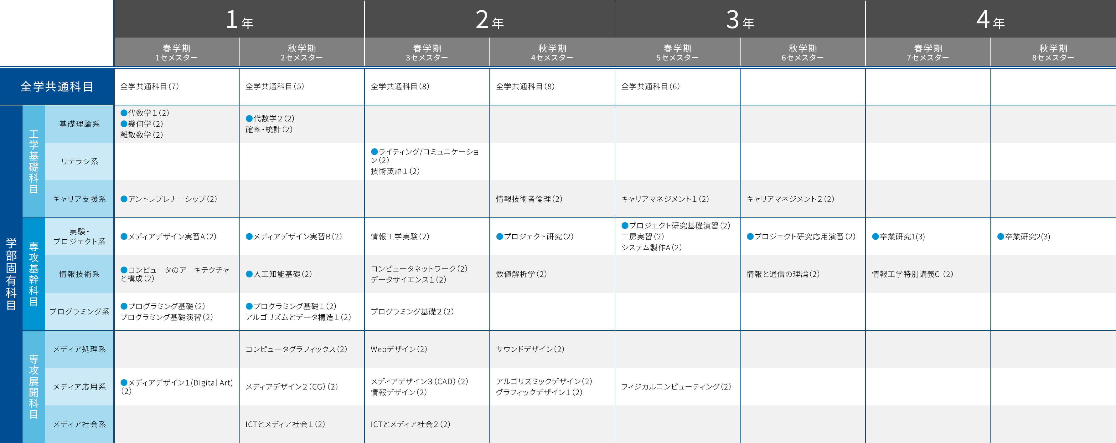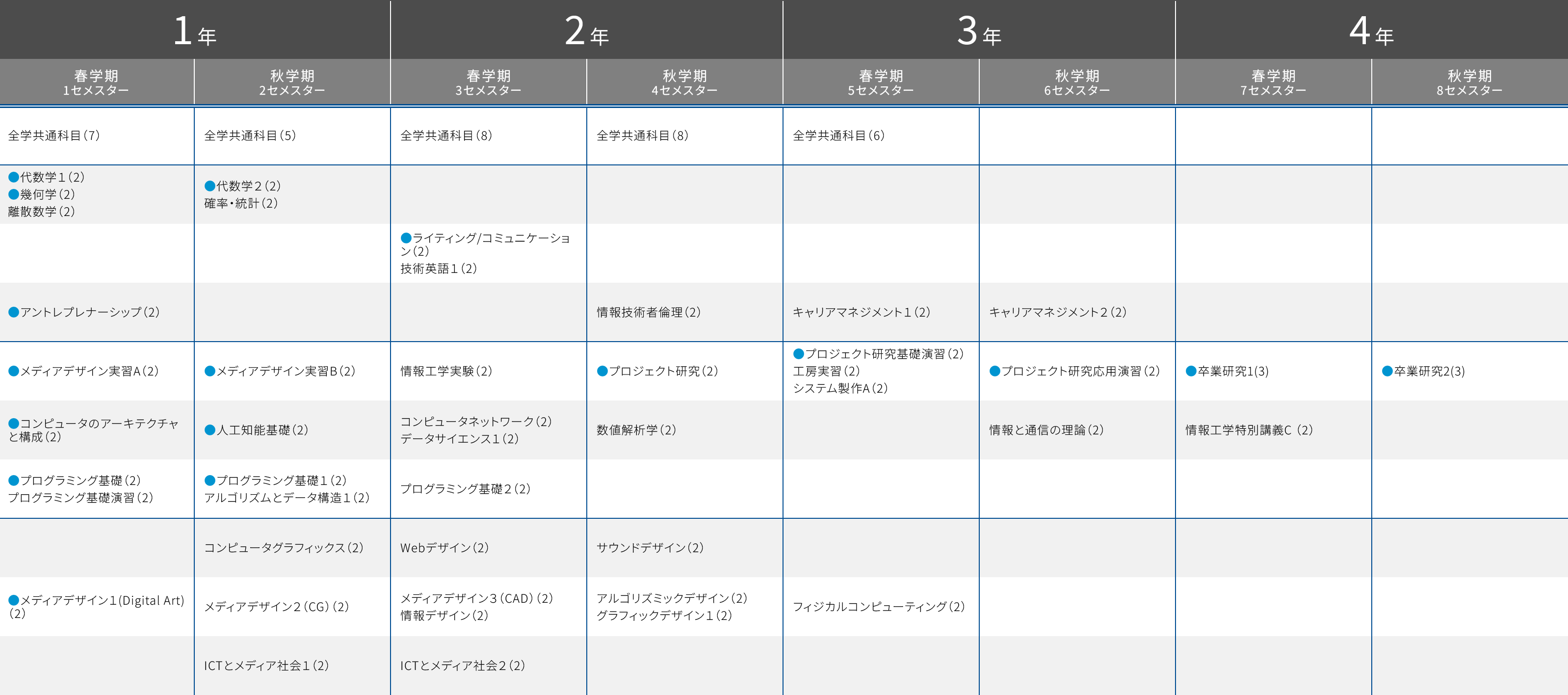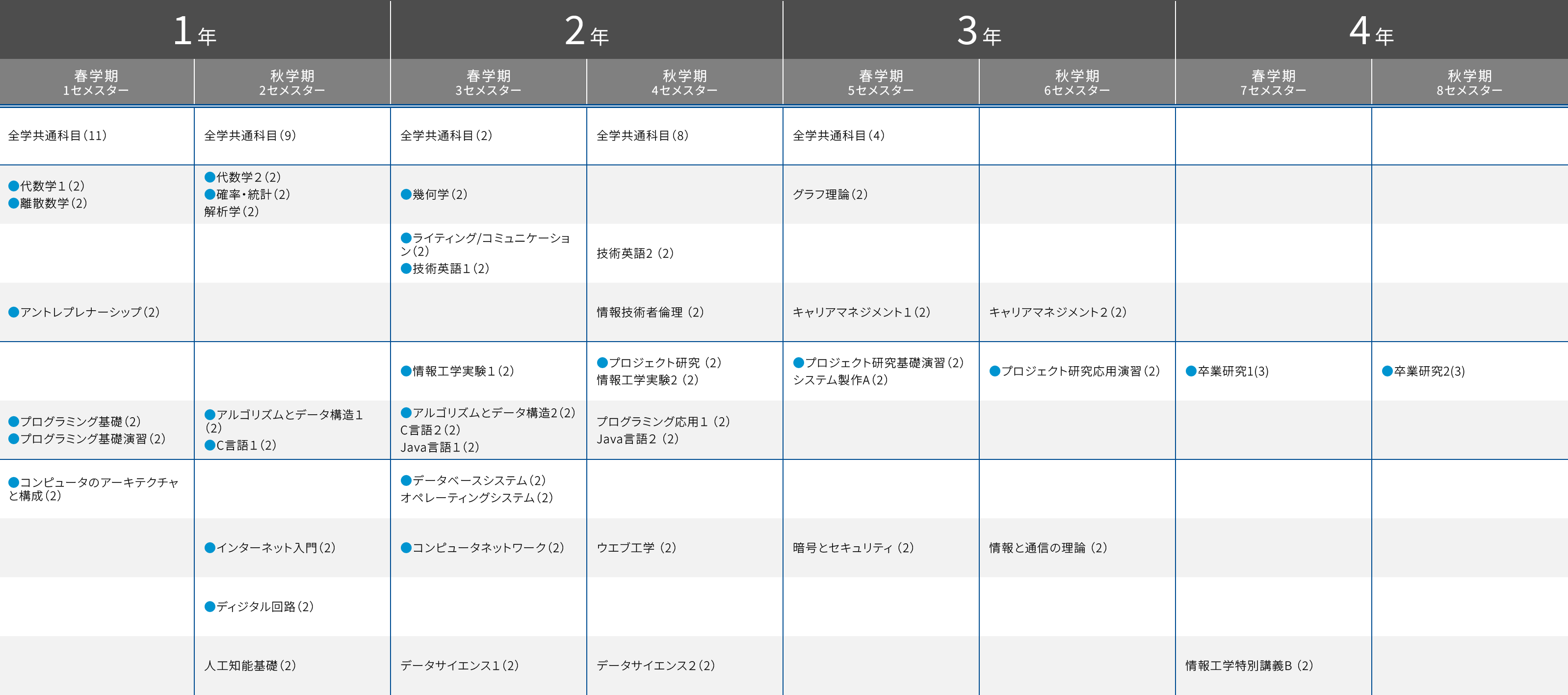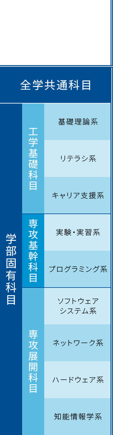 2027年度入学生より、情報工学科カリキュラムの変更を計画しています。なお、掲載の内容は予定であり、内容に変更が生じる場合があります。