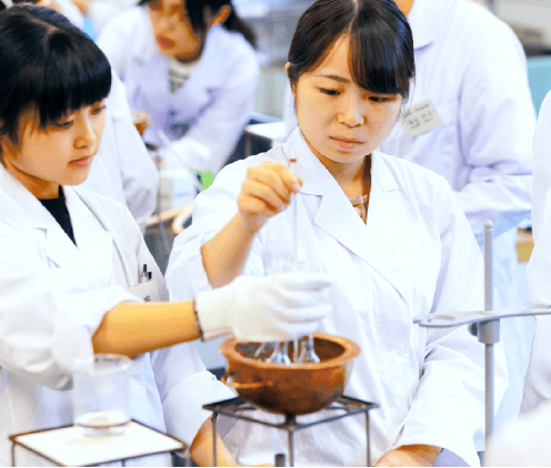 食物栄養学科の研究内容は幅広く、「食」「栄養」「健康」などさまざまなテーマで卒業研究を完成させます。指導教員の丁寧なサポートのもと、学生は自分の興味・関心に合わせて専門的な知識手法を身につけていきます。