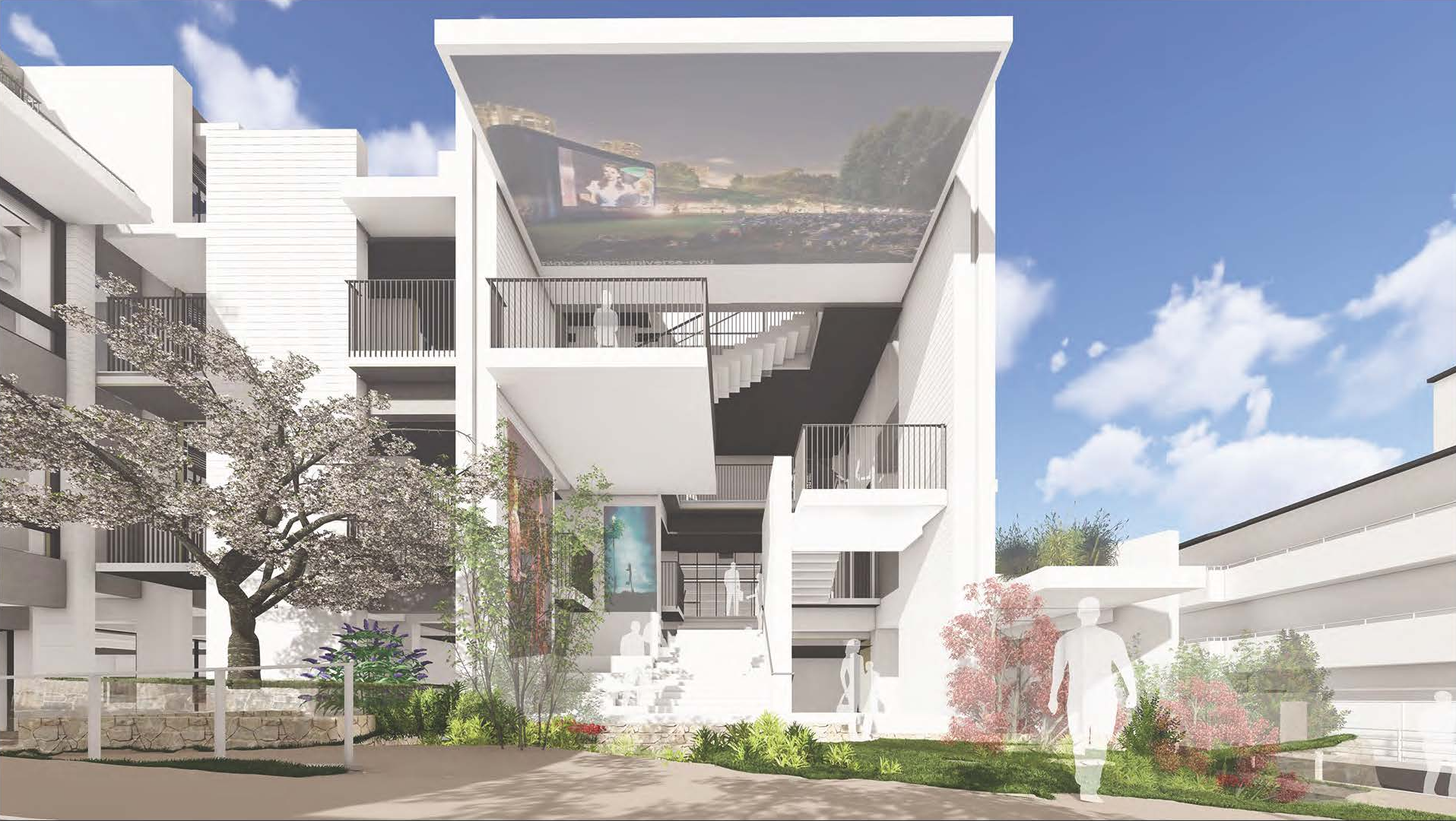 1階は講義室、2階はデジタルファクトリー、3階はプロジェクトラボ、4階はPLAYSPACEや心理学実験室を配置しています。